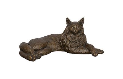 Cat Sculpture, Large, Chamcha Wood, Gray Stone Finish