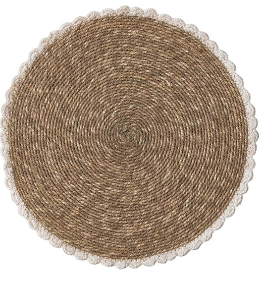 15” Round-Woven Seagrass & Cotton Crocheted Placemat