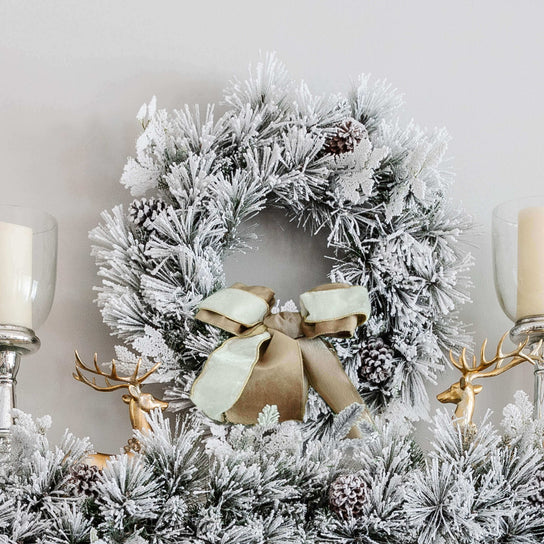 24″ Marquis Flock Wreath with 50 Warm White Led Lights (Battery Operated)