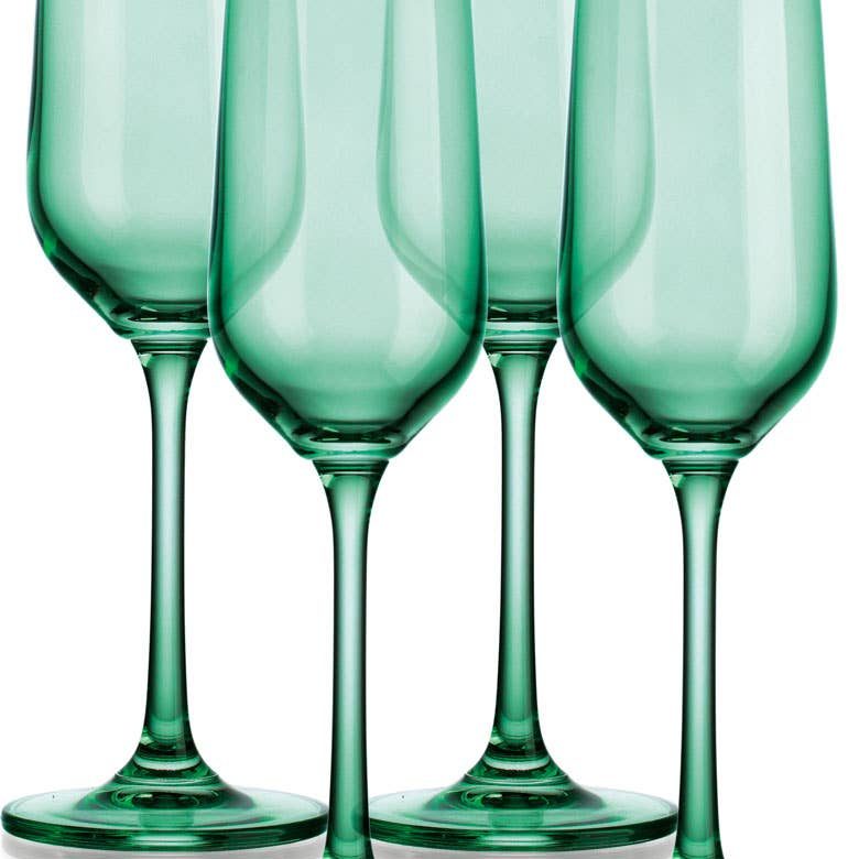 Colored Crystal Set of Four Colored Champagne Flutes-GREEN