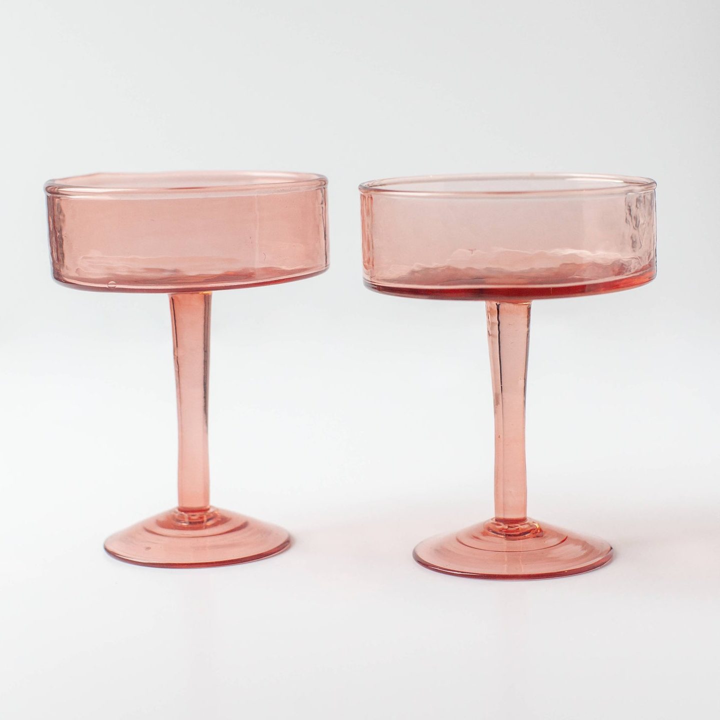 Pair of Blush Handblown Hammered Coupe Cocktail Glass